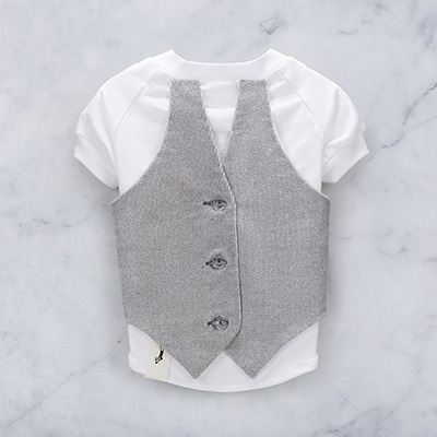 A snazzy night out on the town? A fancy affair? Look no further. An all in one, perfect for those grand events. A beautifully tailored waistcoat and tie, over a white cotton Tshirt.