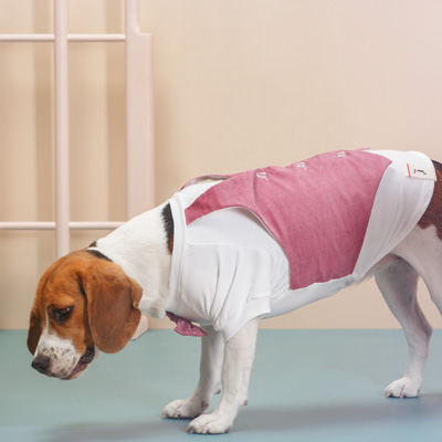 Soft cotton white Tshirt. Buttoned waistcoat at the back Tie at the front.